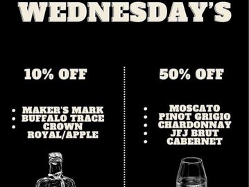 Whiskey and Wine Special - 10% off whiskey, 50% off wine!